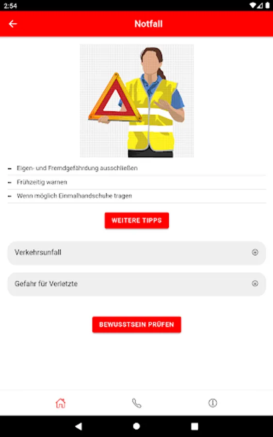 The interactive immediate measures guide you step by step through an emergency and with our first aid tips you can refresh and deepen your knowledge and skills.