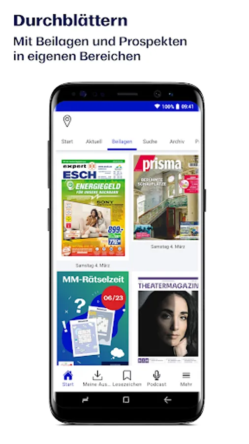 + Podcasts: Listen to interesting topics directly in the e-paper app.