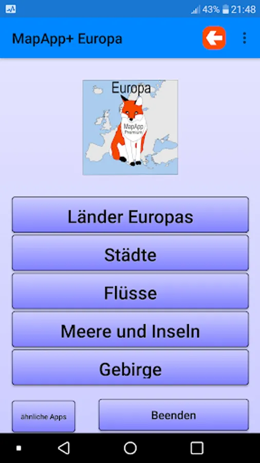 This is the premium version of the free app 'Learn European Countries: MapApp'.