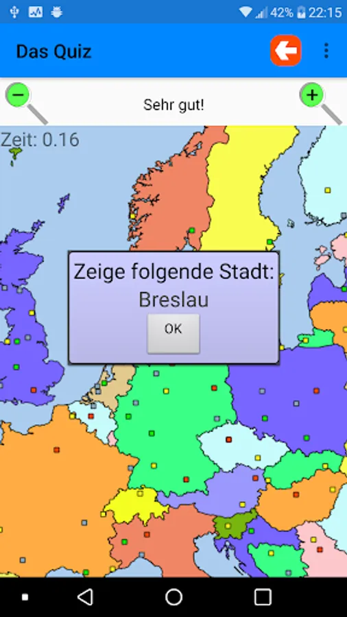 The cities can be learned in 4 levels of difficulty with 30 cities each. Only those difficulty levels are displayed on the map that also appear in the query.