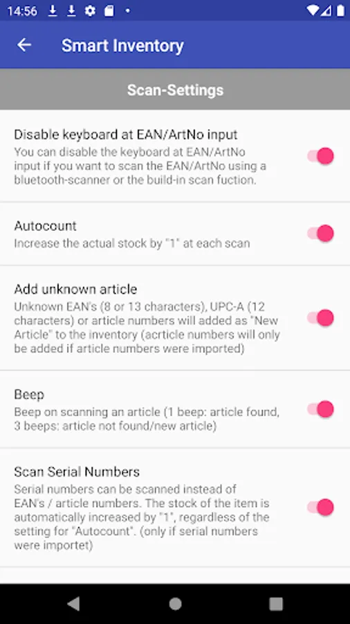 - Smart Inventory is unlimited. Here only the performance or storage capacity of your smartphone limits how much inventories / articles per inventory you can manage