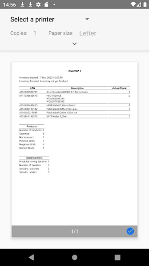The data exchange with your ERP is done easily by means of CSV files (comma-separated values). You can easily save the finished inventory, send it by email, send it to your Google Drive, or print it out directly.