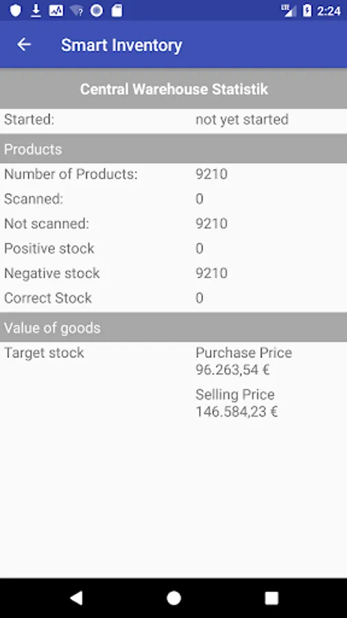 - Inventory statistics incl. Value of inventory (if purchase price or selling price have been imported)