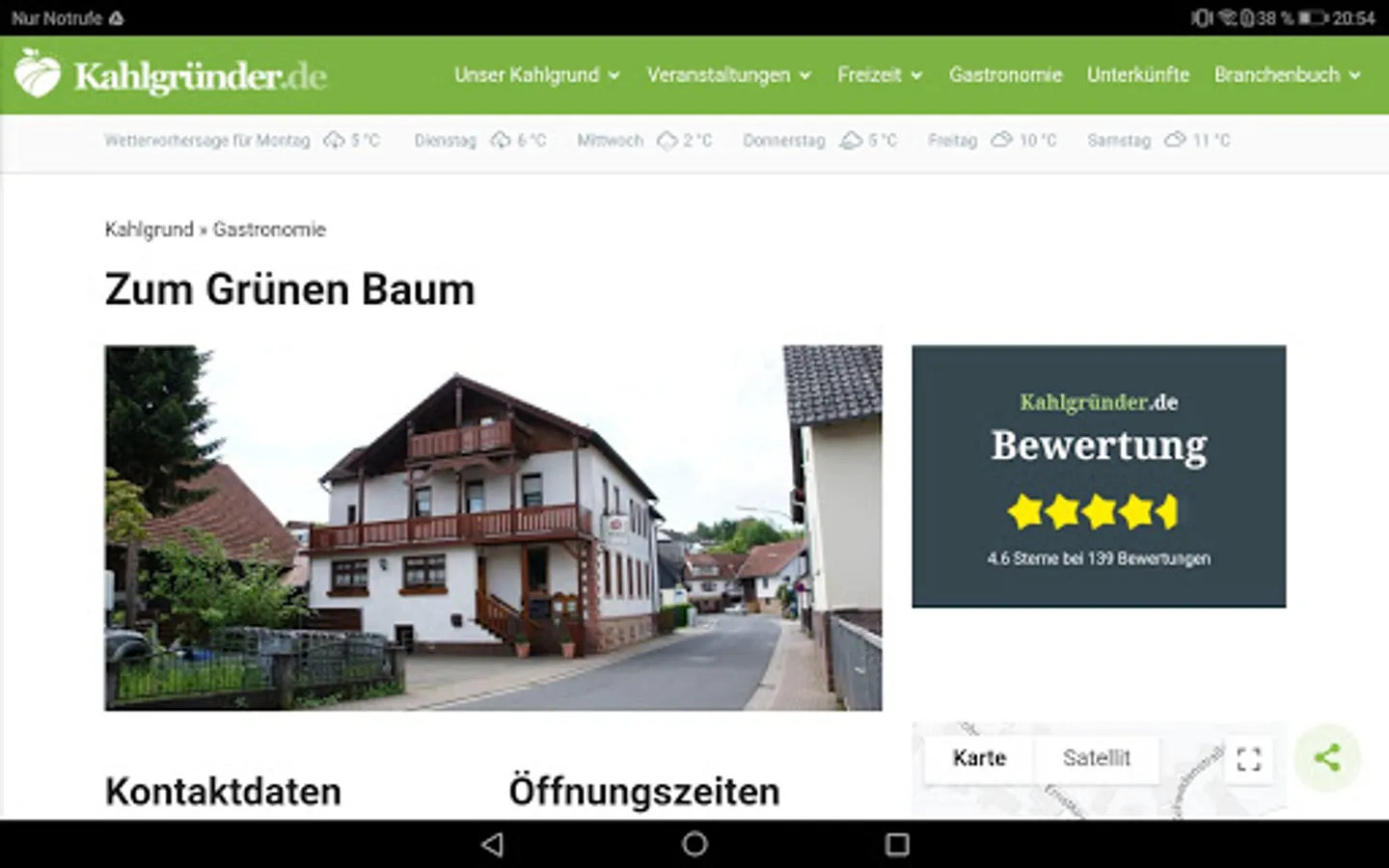 Those who are hungry or thirsty will find restaurants, inns, cafes, ice cream parlors, beer gardens and something for the small hunger in the leisure app. Of course, there are also the opening times and other important information about the location.