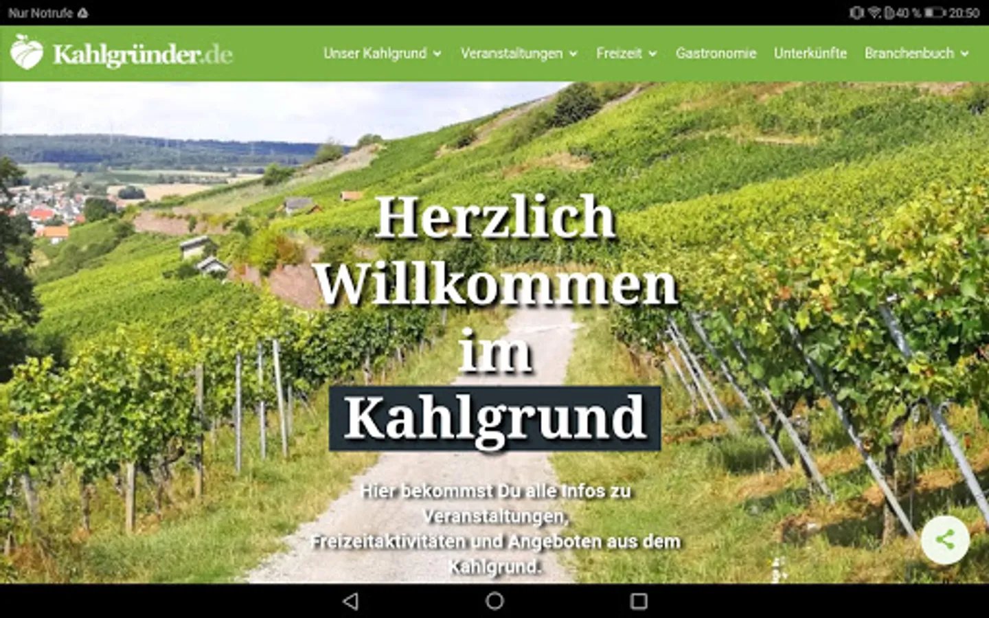 KAHLGRÜNDER - The travel guide app for the upper, middle and lower Kahlgrund in beautiful Lower Franconia provides answers to the most important questions from residents and holiday guests: Where is what going on in Kahlgrund? What can I do with my family today, what are the most interesting sights and who can I book my accommodation with?