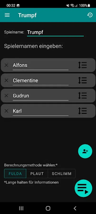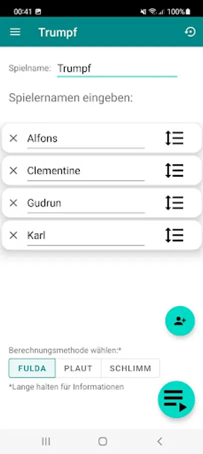 Trump - The Game helps you calculating the points for your estimate. Not need for pen and paper anymore. You can play the game with Elfer raus! cards.