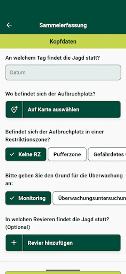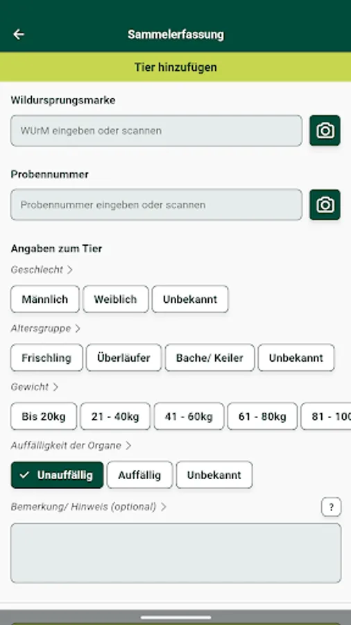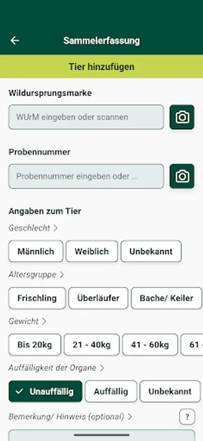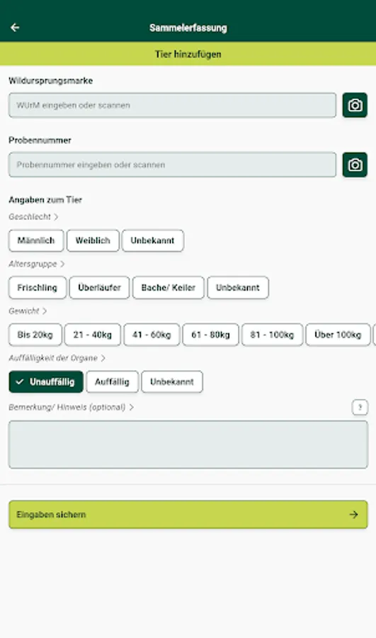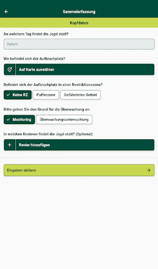 The wild animal coordinates recording app (WilKEA) is an offer for those authorized to hunt, with which the data collected in connection with sampling an animal that has been shot or found dead can be digitally recorded. Alternatively, these must be entered in a sample information sheet.