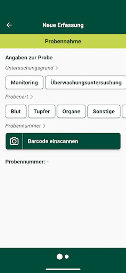 - Scanning and saving the barcode of the sampling container/label for the wild animals killed