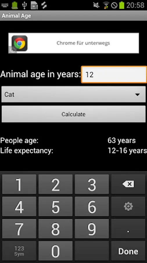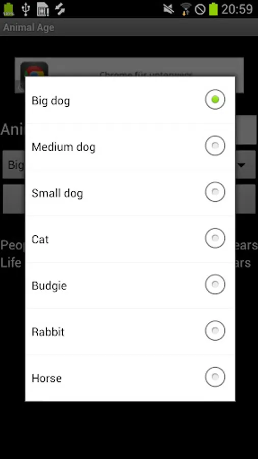 The app allows you to convert animal age to the human age.