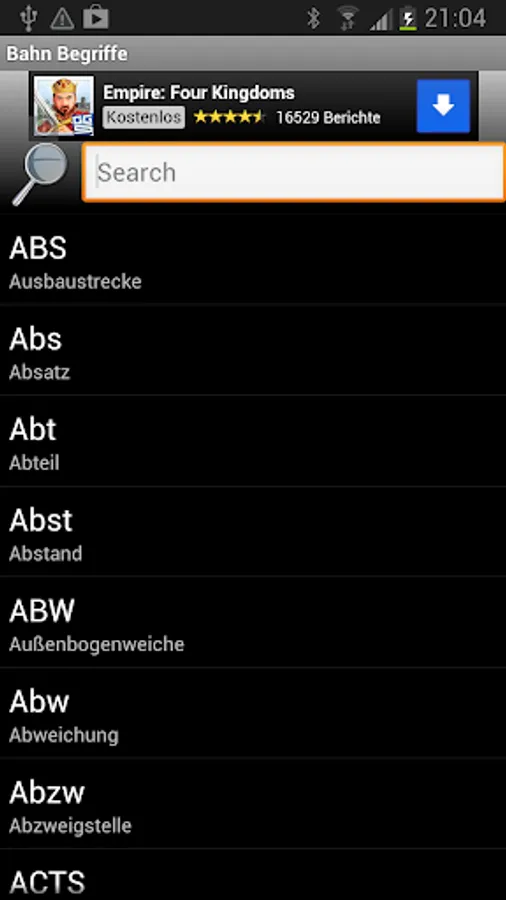 With this app, you have all the important acronyms and terms from the world of the railway on your Smartphone.