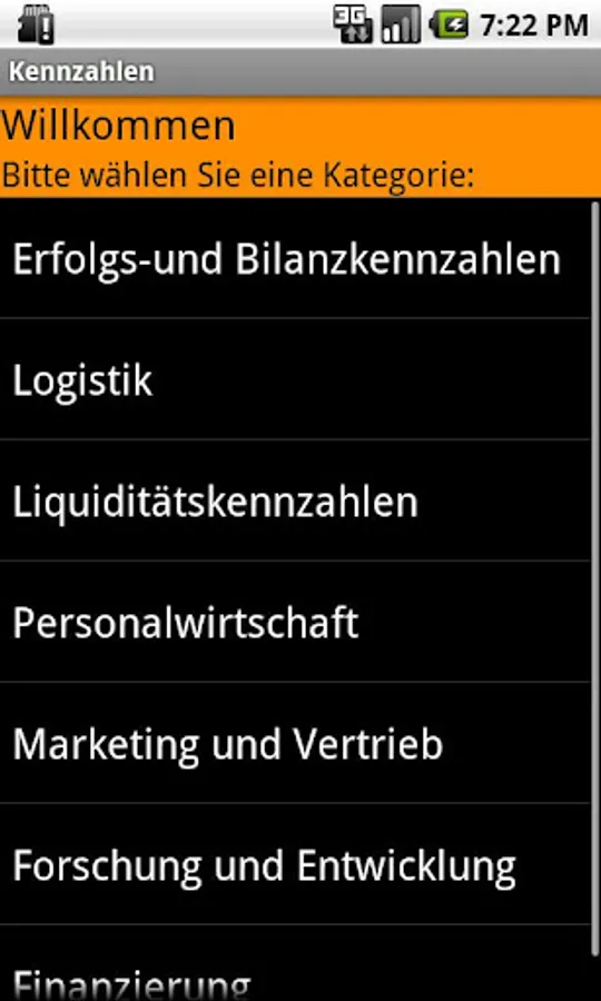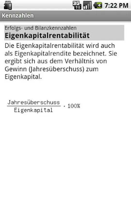The app includes ratios from the following areas: