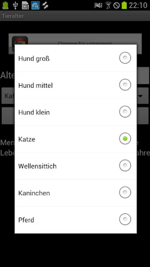 With the animal age app, you can easily convert the age of your pet (z. B. dog) in the human age.