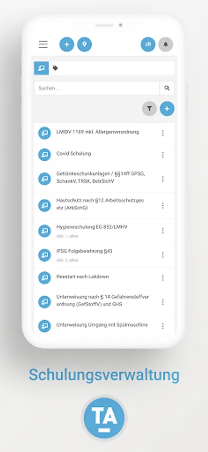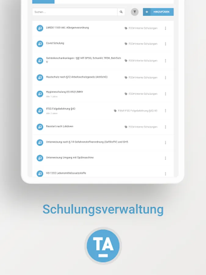 The TA module maps both your training status and that of your employees. And not just that. As an entrepreneur, you can create and manage the hygiene, BG and employee training courses that are relevant to you. The required training documents and participant lists are available at the push of a button.