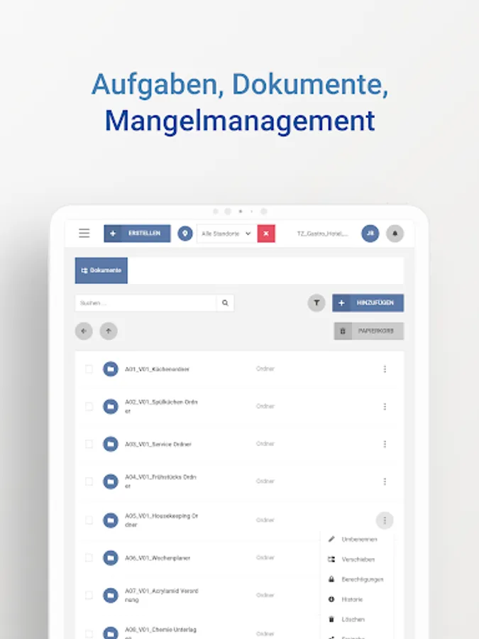 With the MY module you can manage all important information such as reported defects, location data, contacts, contact data, administrators, users as well as your own emergency management. With the help of the central document management, you can allow access to and share company documents system wide. This gives you access to all your data anytime, anywhere. Selective task distribution allows you to assign tasks to individual users or entire groups and to schedule them as well.