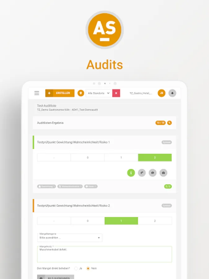 With the QMSpot audit system, you simplify and standardize all processes in your company, before, during and after an audit. Our AS module serves you as a multifunctional tool for statistics, reports and evaluations. You yourself determine the test criteria within your audit, store work instructions as well as procedural instructions and define CCP's (Critical Checkpoints). Use saved templates or use the data from the previous audit as the basis for the current capture.