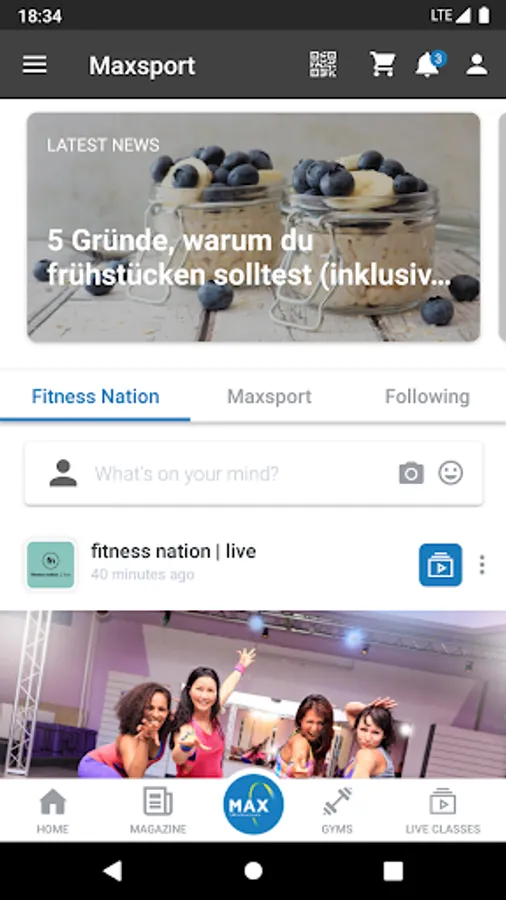 - Integrated news and updates of your own fitness studio