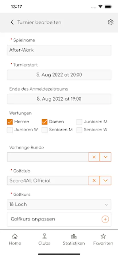 You can create a new game with just a few clicks: enter game information, select one of the stored golf clubs and golf courses and invite your fellow players directly from the app via a link or QR code - let's go! Play private rounds with multiple flights to compete.
