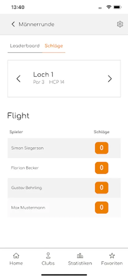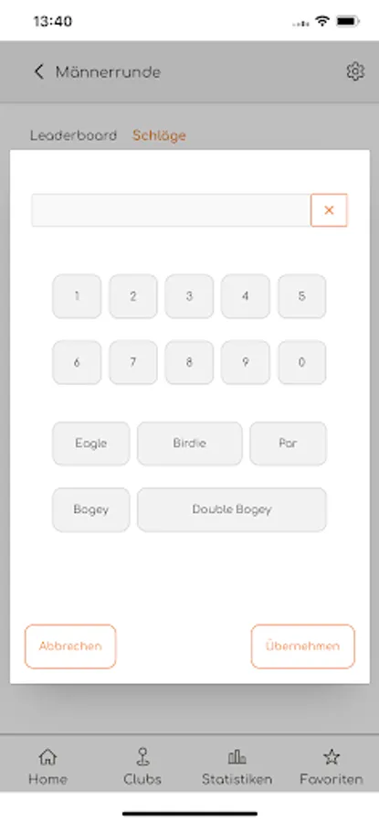 click. click. score. The input mask for recording your shots has been optimized for your needs: You indicate whether you played a birdie, par or a bogey. Of course you can also enter the shots for your fellow players.