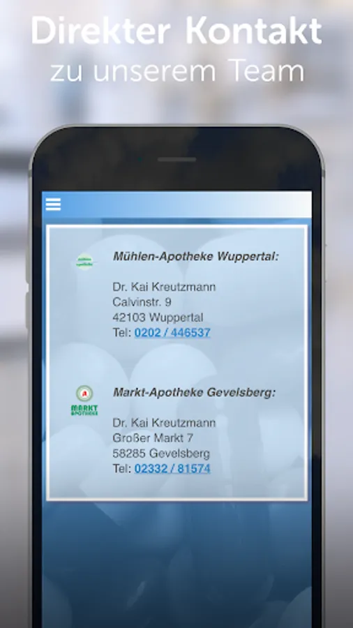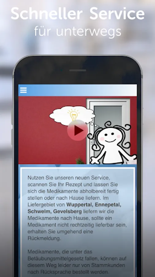 Patients in Wuppertal, Ennepetal, Gevelsberg and Schwelm can use this app for convenient medication order.
