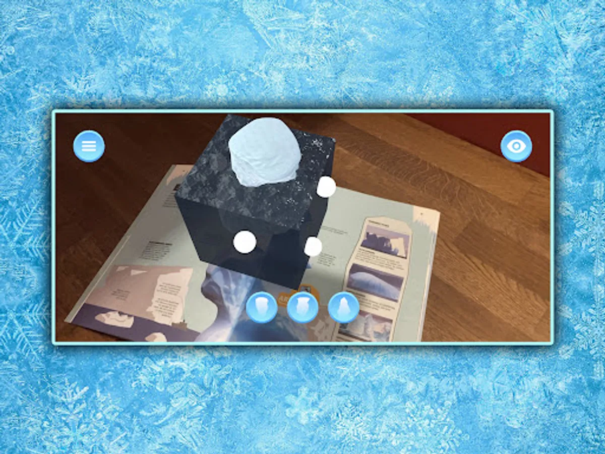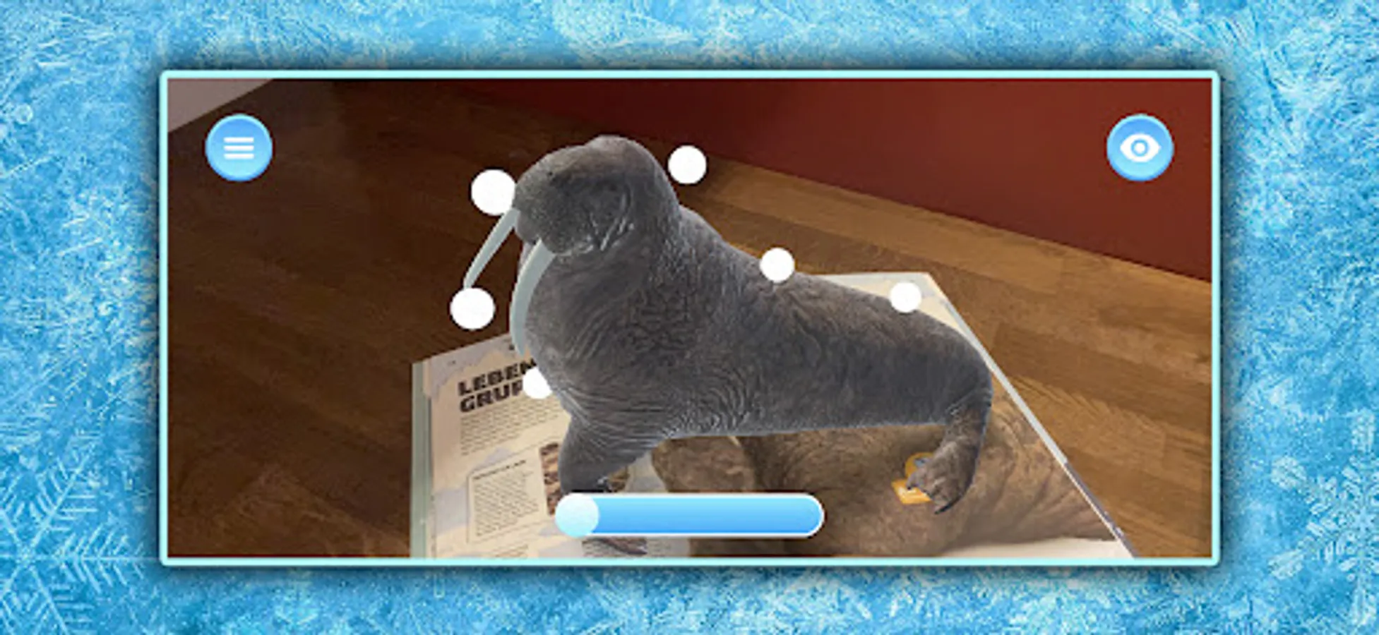 Augmented Reality (AR for short) combines the real world with interactive animations that you can call up on a smartphone or tablet. For example, you can look at pictures in a book or magazine in 3D, look at them from all sides or deal with them in a playful way. With the "EIS-AR" app you can get to know a number of possible AR functions with which you can immerse yourself in the world of the coldest regions in the world. Let yourself be surprised!
