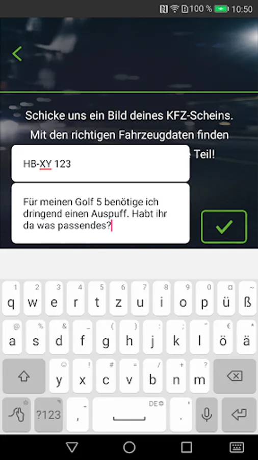 Photo of the registration certificate and / or make the part and send them along as an attachment.