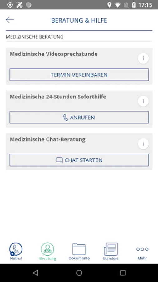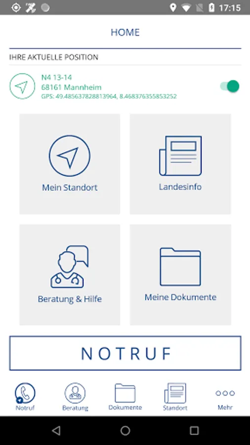 The European Accounting app helps whenever you need help. The app has an emergency call function that connects you directly to a medical service center in an emergency. At the same time, their location is transmitted to the ServiceCenter and the medical staff can B. Find doctors or hospitals in your area.