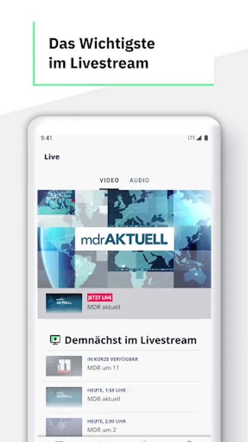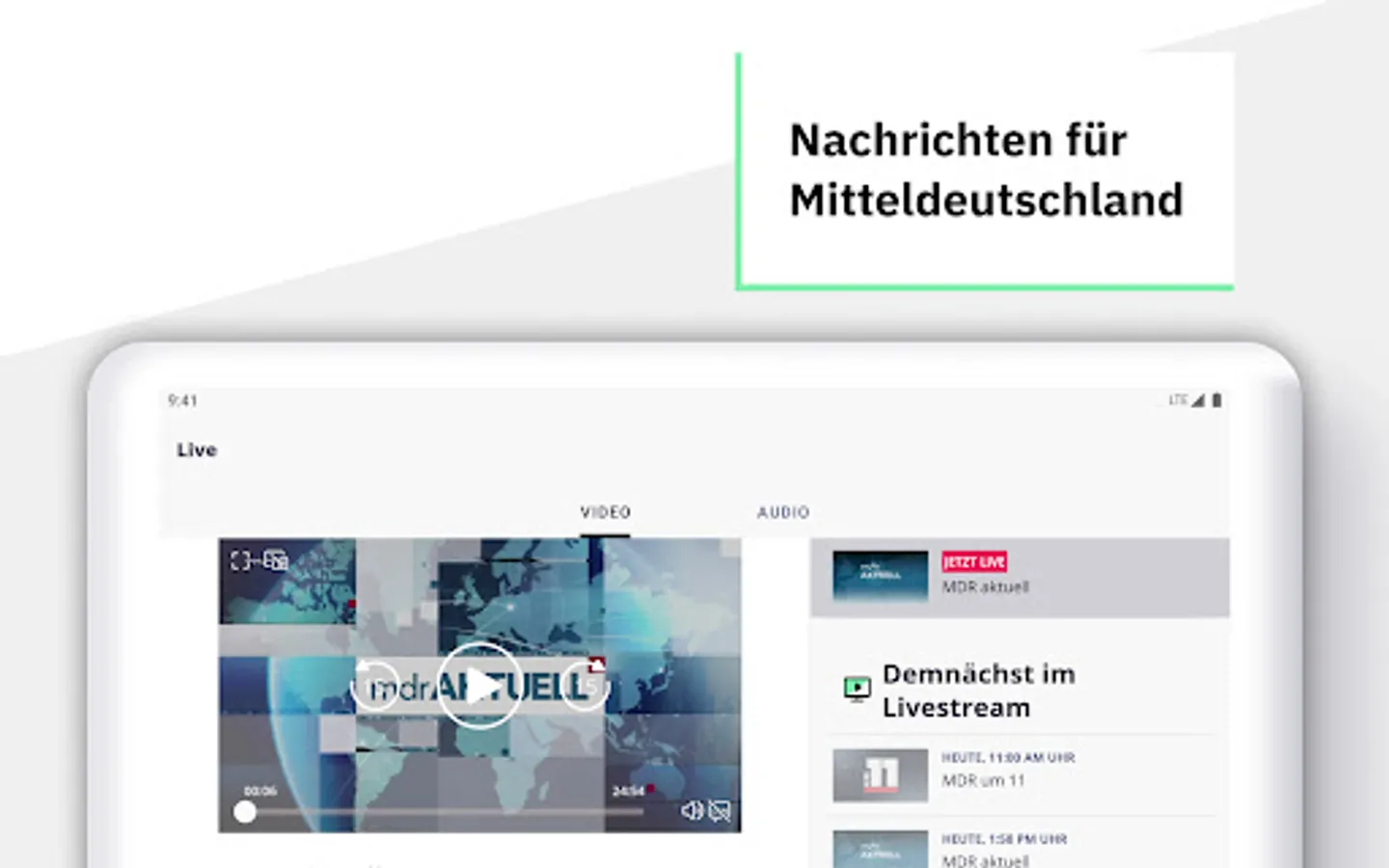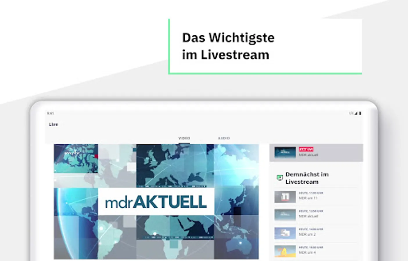 In addition, in the live area you have the opportunity to follow the news program of the MDR in the live stream as well as live broadcasts.