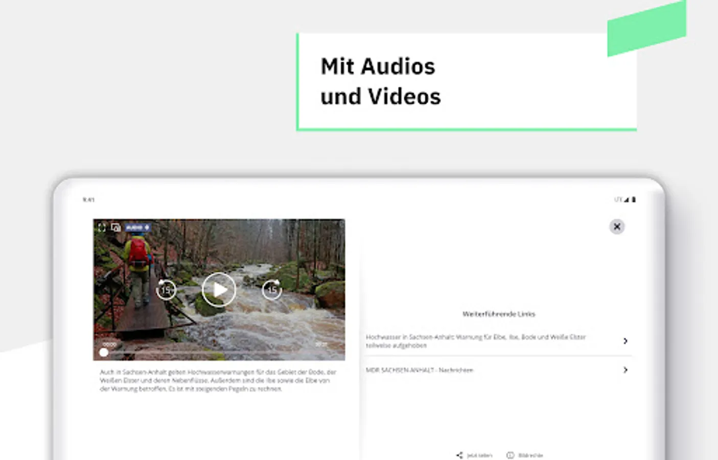 Design adapted for tablets with multitasking: In addition to the MDR Aktuell app, you can easily operate several apps in parallel via split screen.