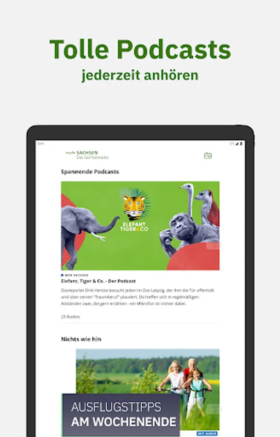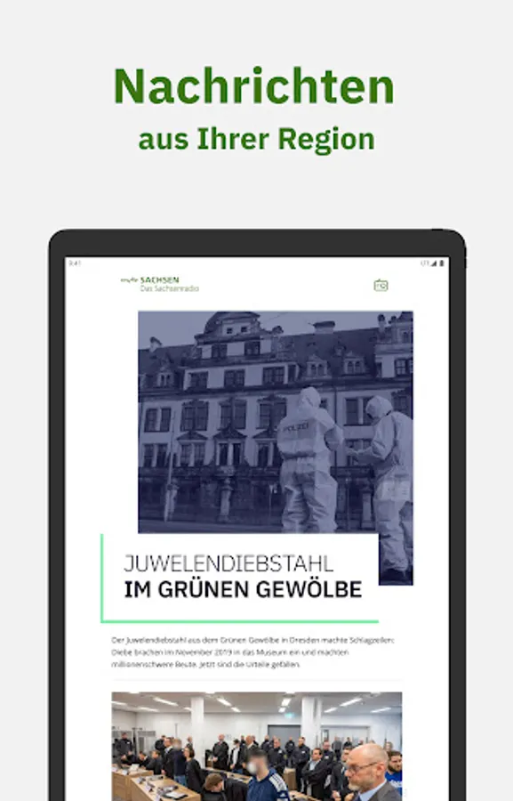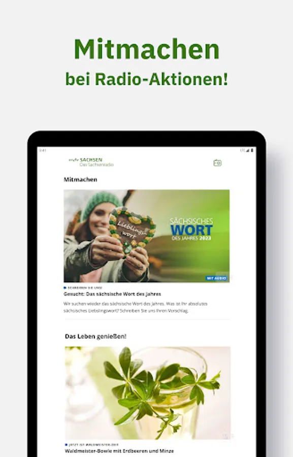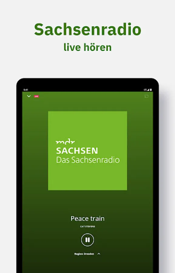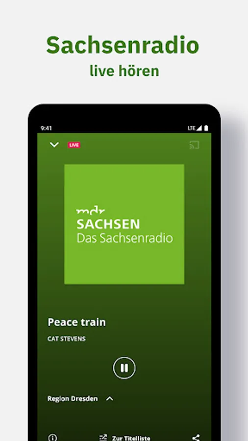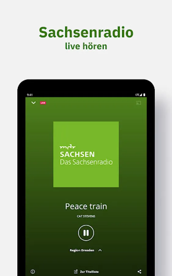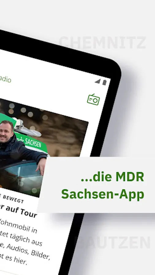 • Radio: We deliver Sachsenradio live streams directly to your smartphone every day. Choose between the regions of Dresden, Bautzen, Chemnitz, Leipzig and Plauen, or be inspired by our hit world. Of course including a title list.