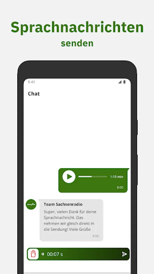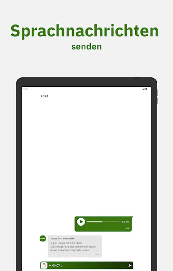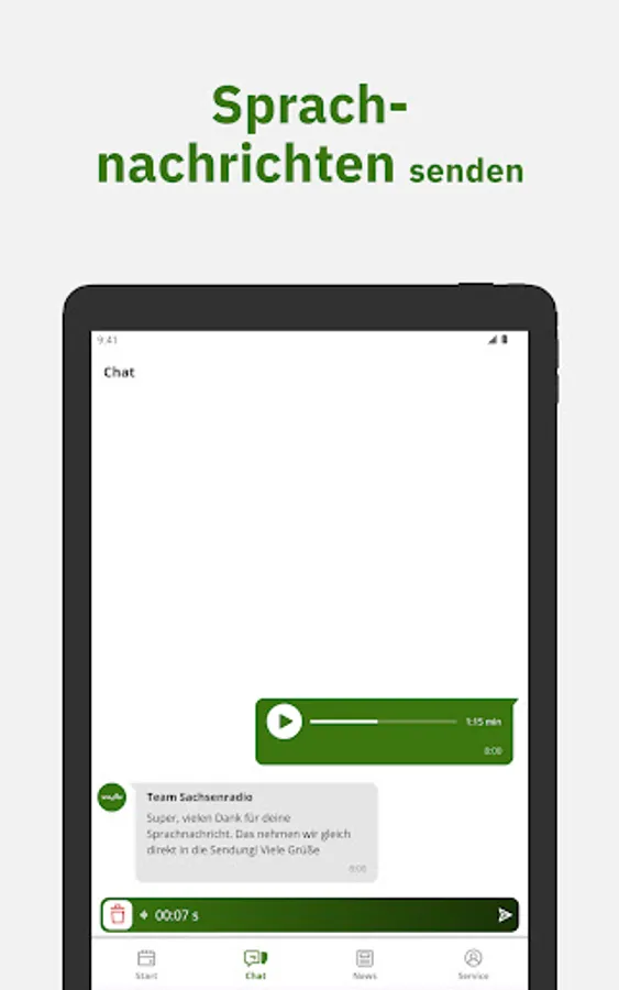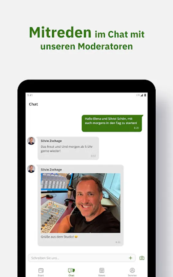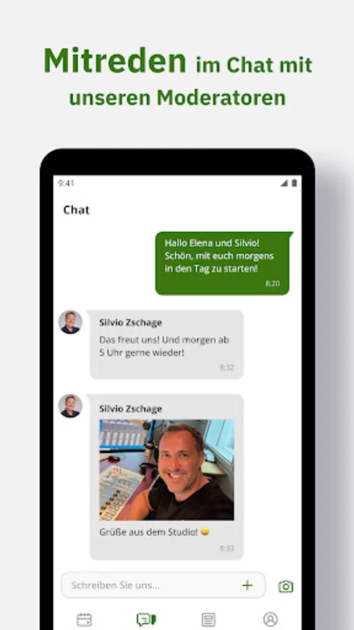 • Chat: Now you can send us your messages or pictures directly. Sachsenradio moderators are always in touch with you via chat!