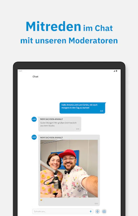 You can now contact us directly via the chat function. News, dates, radio campaigns. With the MDR Sachsen-Anhalt app you always know what's happening in Saxony. In the live stream or conveniently to listen or read.
