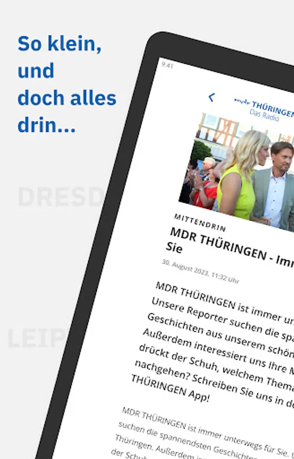 With the MDR THÜRINGEN app you always know what's happening in Thuringia.
