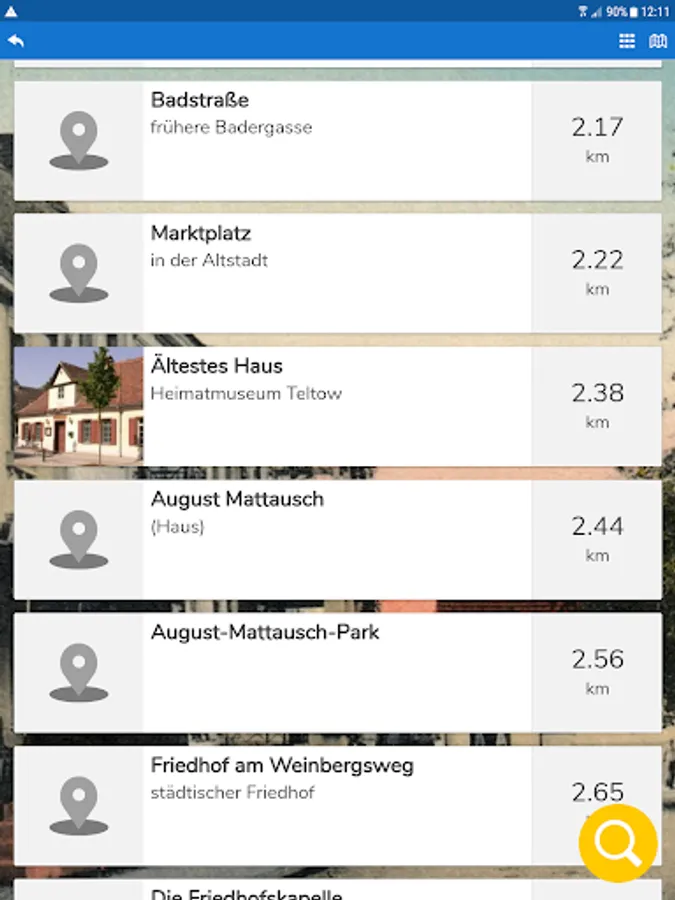 This app contains a (later several) city tours through Teltow. You will receive location-specific information about the nearest stations of the tour.