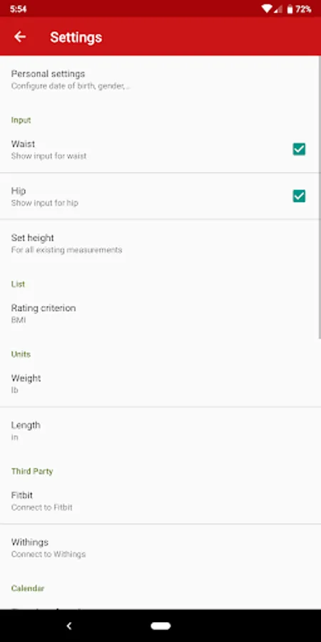 • Paid in-app extension: Import values from Withings and Fitbit digital body weight scales
