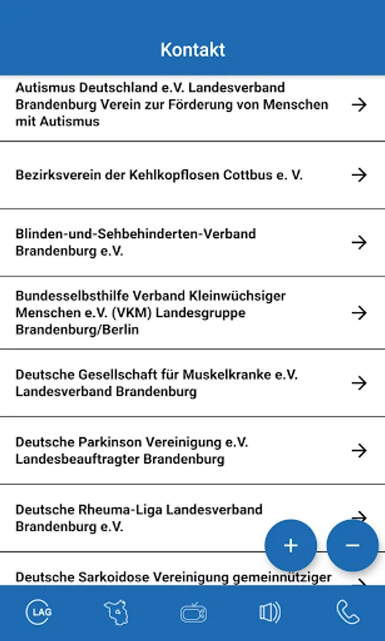 The LANDESARBEITSGEMEINSCHAFT SELBSTHILFE BRANDENBURG e.V. (LAG-SH) is the umbrella organization of currently 18 self-help associations for people with disabilities and chronic diseases and their relatives.