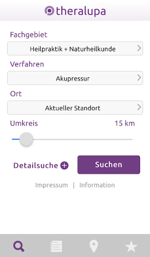 With the theralupa app, you can now find mobile naturopaths, osteopaths, naturopaths for psychotherapy, psychological consultants, pet therapy and wellness providers in your immediate vicinity and through various filtering methods.
