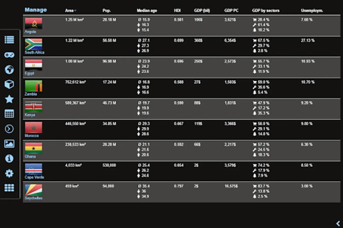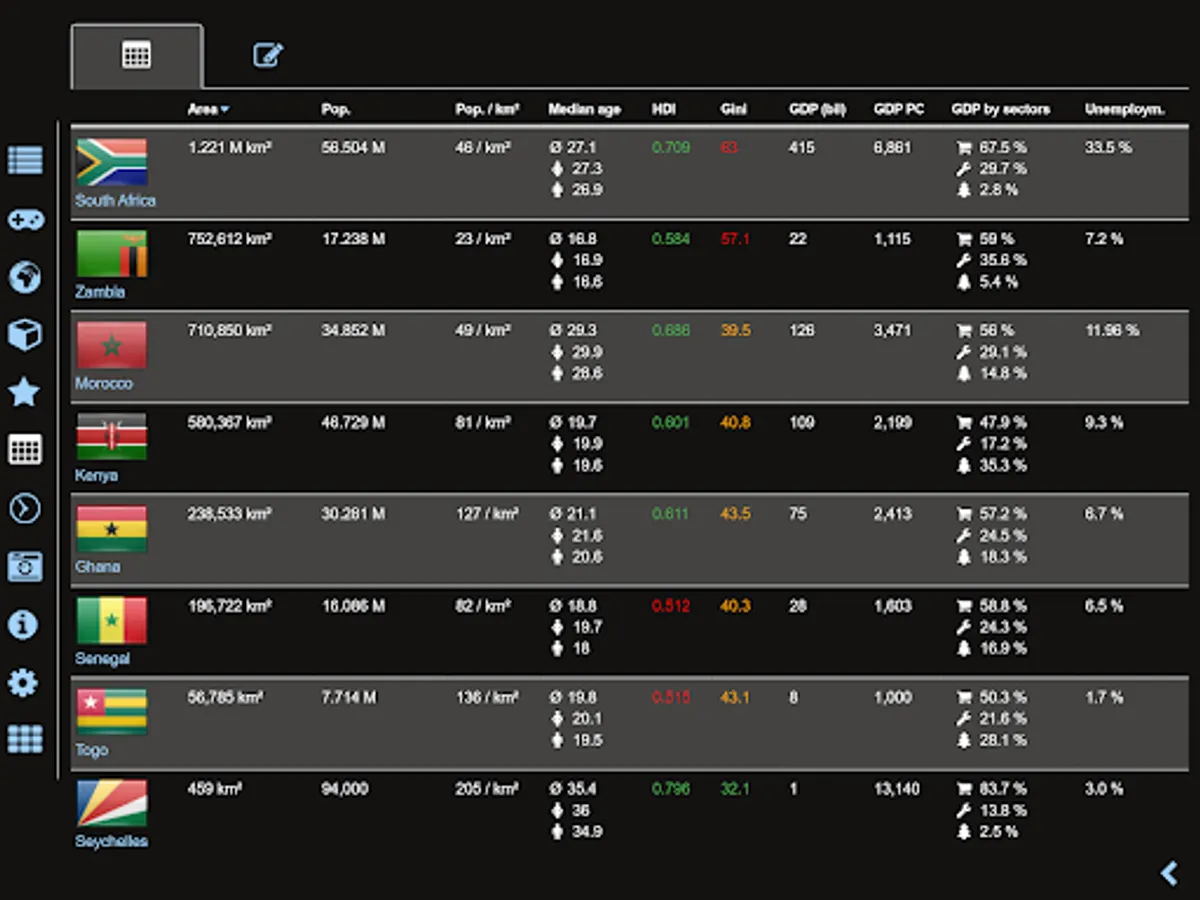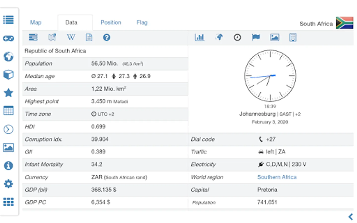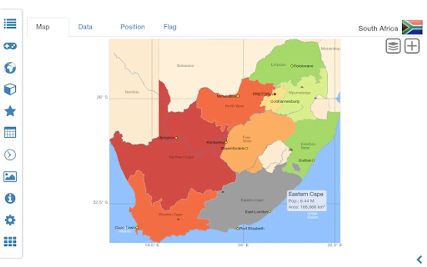 World atlas, world map and educational app for geography. Flags, position maps and basic data for more than 260 countries and territories of the world. Political maps with regional units and comprehensive economic and statistical country data for all African countries.