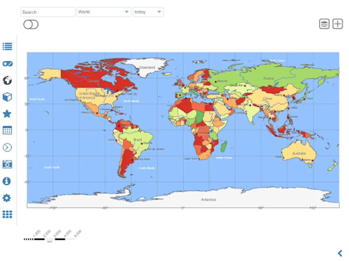 • Search for countries, major cities, rivers, mountains, lakes or coordinates