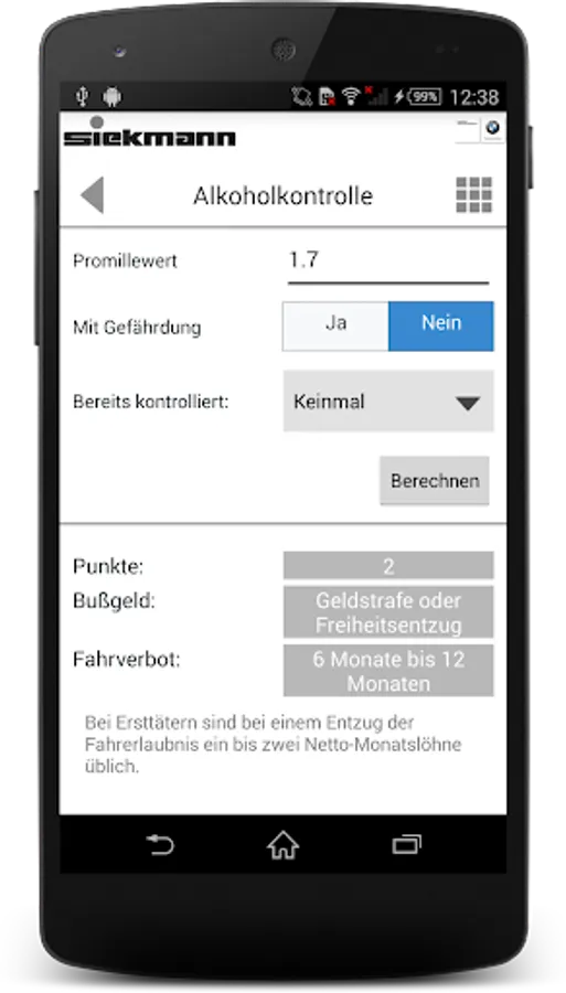 Another highlight of our app is the penalty computer. Driving too fast? Not wearing a seatbelt? Overlooked Red light? Our calculator gives you focus, with which punishment to be expected.