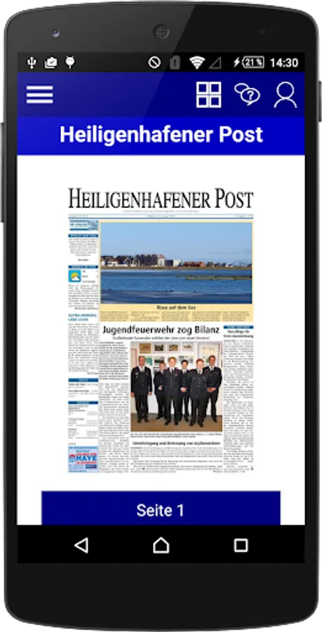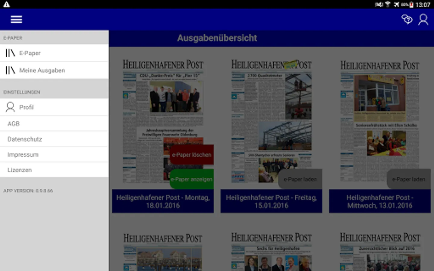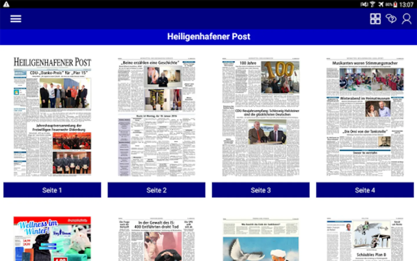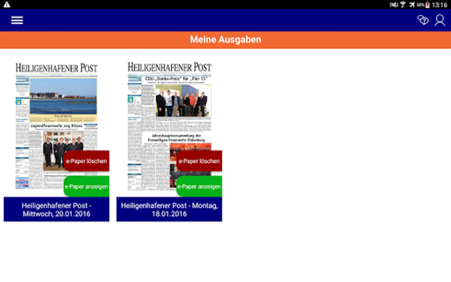 The Fehmarn24 e-Paper App keeps all two editions of the past 14 days of publication in