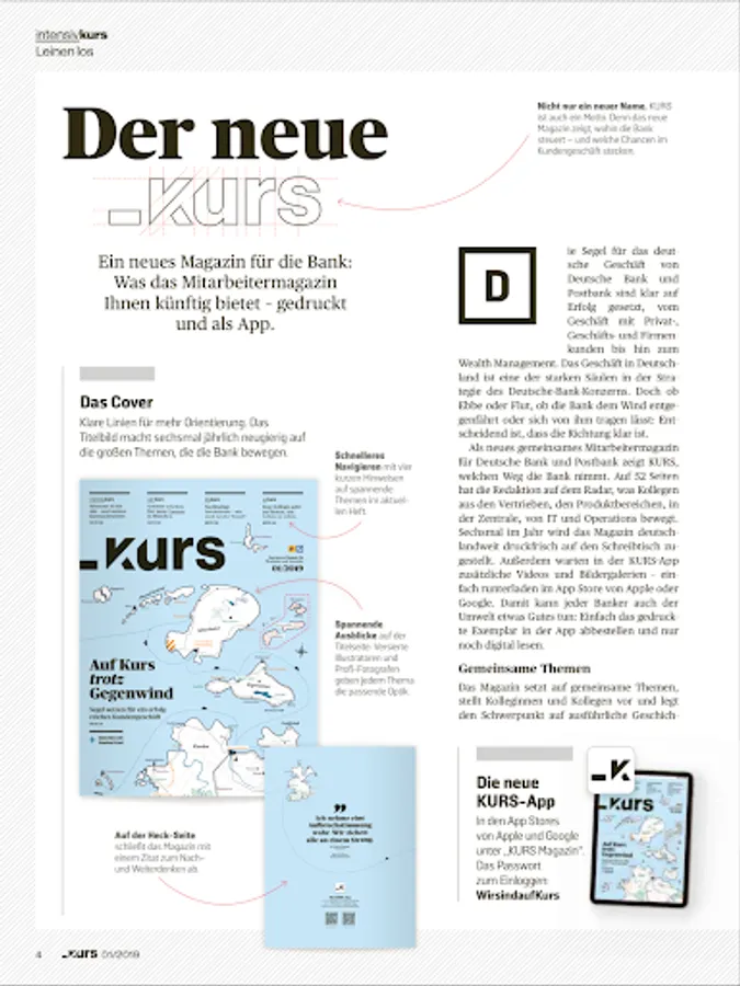 The internal magazine for employees and agents in the private and corporate banking business of Deutsche Bank and Postbank as well as Wealth Management Germany.