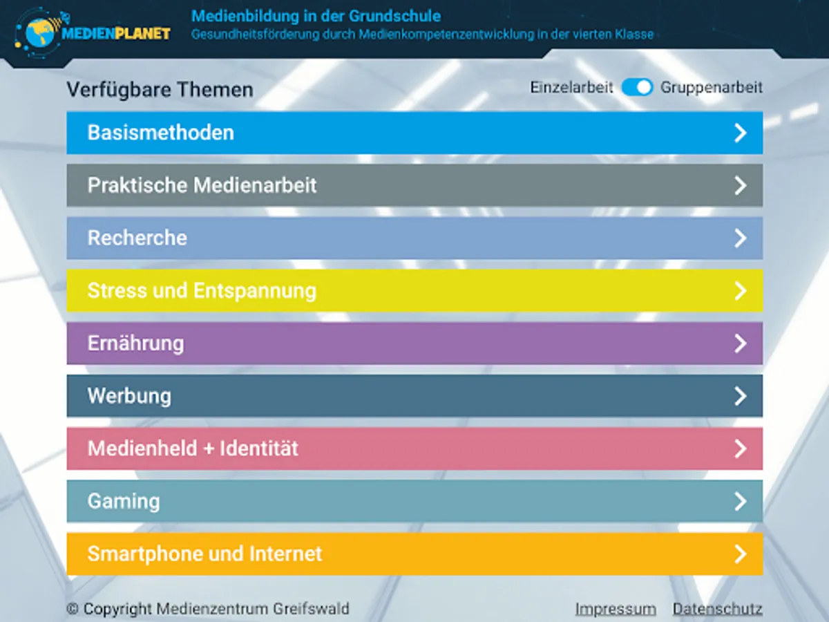 The app makes the interactive exercises of the “MedienUniversum” teacher portal available for tablets. Find out more at https://medienkompetenz.tk.de.