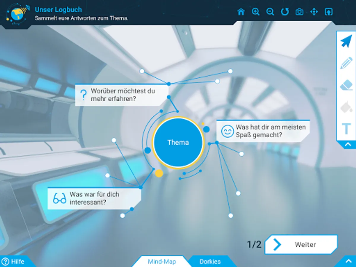 • Versatile design options: The students can get involved in various learning topics and implement their ideas with a wide range of creative tools: write their own texts, create digital works of art with the painting tool, create topic-specific mind maps and upload their own photos.