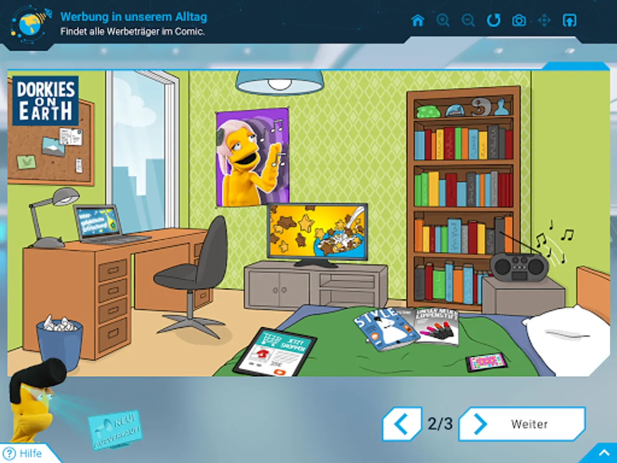 Together with the dorkies, the children work on exercises on topics such as “practical media work”, “stress and relaxation”, “nutrition”, “advertising”, “media hero and identity”, “gaming” and “smartphone and internet”. The sympathetic yellow aliens give feedback on every task and also help the children to critically reflect on their own use of the media.