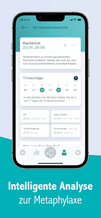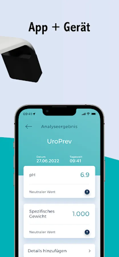Quickly and easily document your drinking and nutrition parameters in the app. These can be combined with precise data from your urine if you use our analyzer as a supplement to the Uroli app.