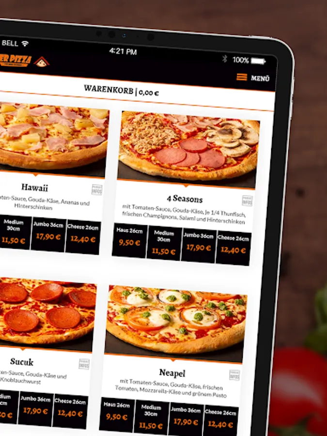 Download the Haus der Pizza app now and order delicious pizza dishes to take home, to the office or to friends. Whether classic toppings or vegan - there is something for every taste!