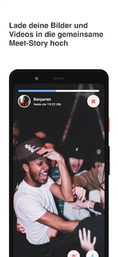 Collect all the pictures from your meet in the shared story with your friends. So everyone can capture, share and remember the most beautiful and funniest moments. Only your friends from the meet can see the pictures, so you don't have to worry about what you are sharing or who might see it.