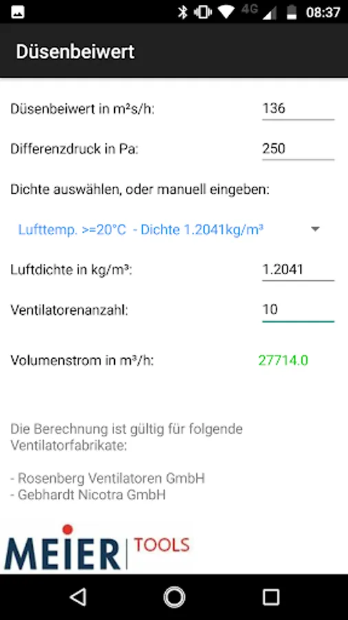 - Nozzle coefficient (K factor) - Volume flow calculation