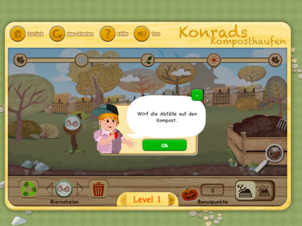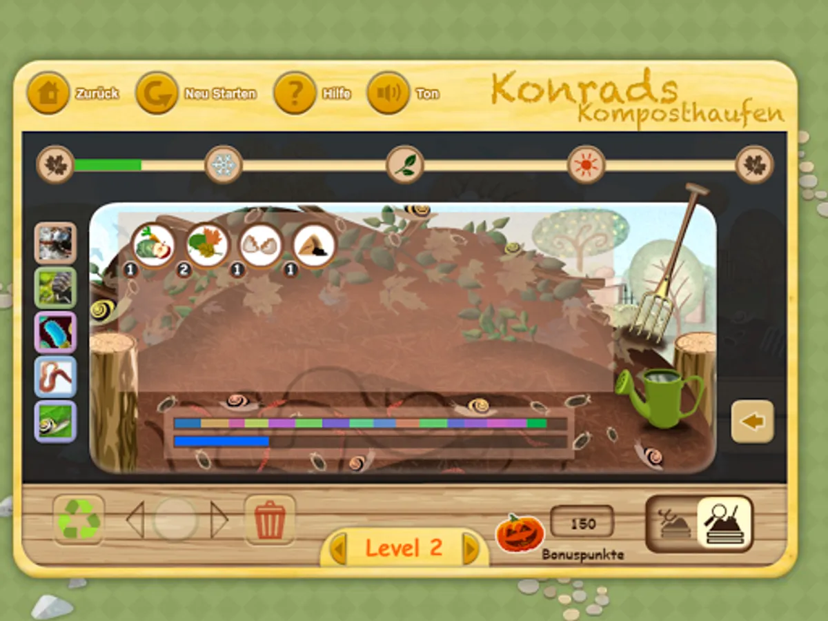 In the game you have to fill and make sure that it comes to animals, fungi and bacteria in the compost well a compost pile of waste. Watch out that no false waste land on the compost. And make sure that it is moist enough. However, it must not be too moist. If all goes well the compost, you can watch as the pumpkin grows.