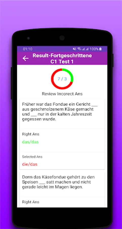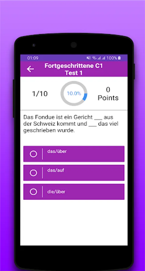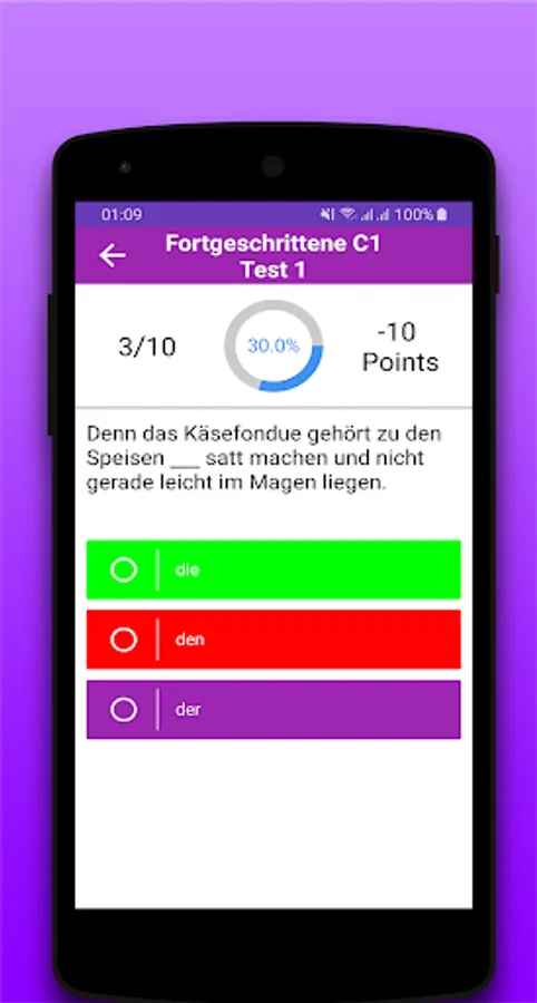 In this app German exercises for advanced C1 you can learn German comfortably on the way or from home. The concept of this German course is modern overviews and exercises. Choose your German B2 and learn german grammar for free.